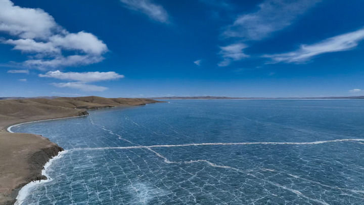 这是3月10日在青海省果洛藏族自治州玛多县境内拍摄的扎陵湖一角。新华社记者 李占轶 摄