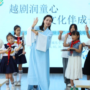 图为嵊州市城东小学的“越剧润童心 文化伴成长”主题活动。(主办方供图)