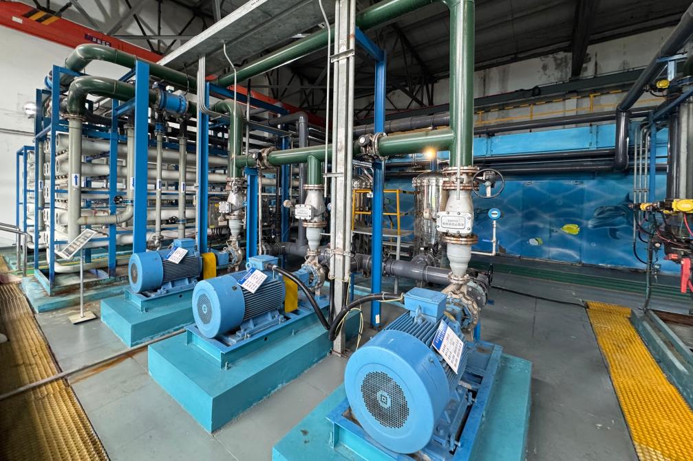 “你应该很难想象,池中的水都来自我们工业生产处理后的废水。”公司动力厂供水车间主任欧耀晖指着一旁的终端水处理厂房说,这些废水经过格栅过滤、气浮沉淀、超滤反渗透等多道工序后,由浑浊变清澈,一部分回到生产线循环利用,另一部分则可以用来绿化浇灌、卫生清洁和养鱼。