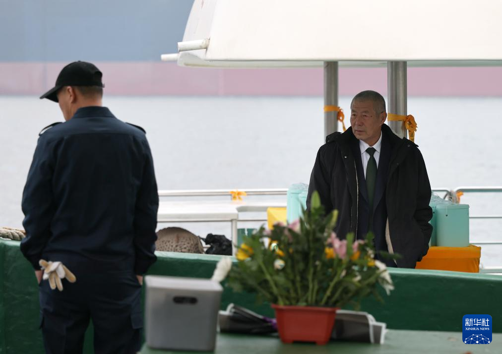 早上,陈琦乘海葬船出海(4月3日摄)。