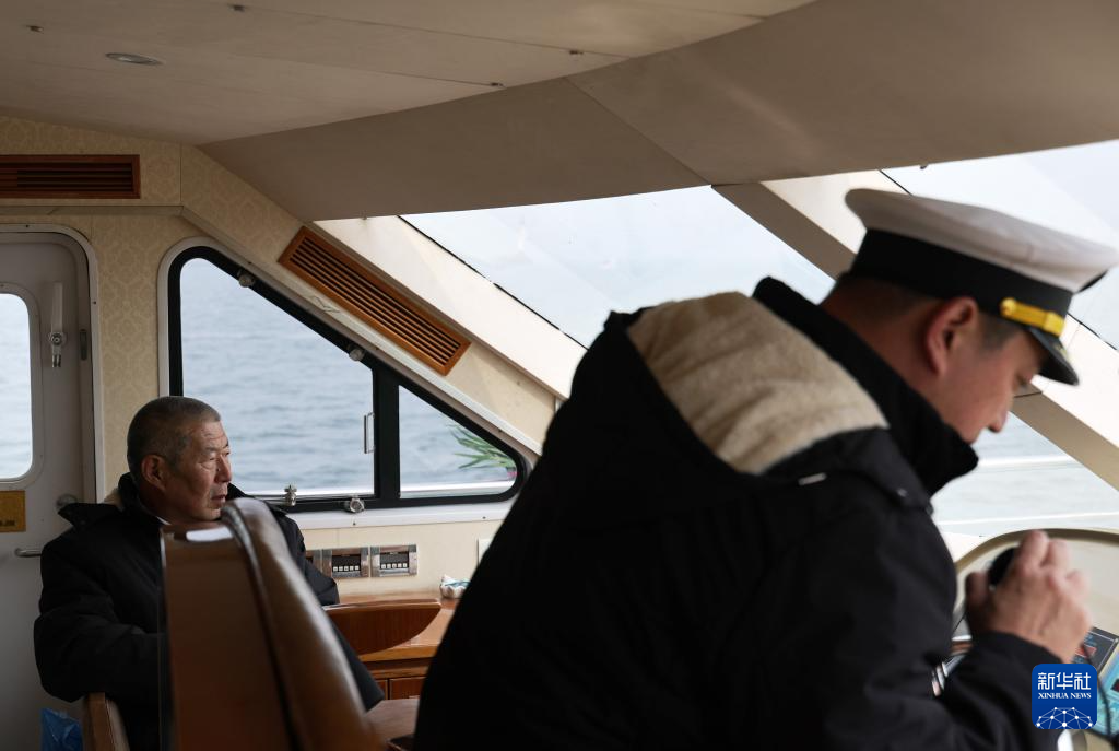 陈琦(左)在驾驶舱,和儿子一起出海(3月29日摄)。
