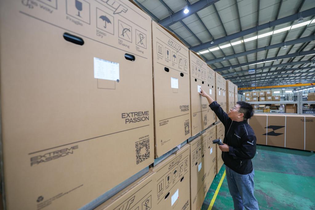 2026年4月1日,工作人员在重庆两江新区“张雪机车”厂房内查验即将出口的整车。