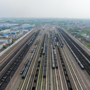图为4月9日,一列列货物列车在新乡站南运转场集结。(国铁郑州局集团公司供图)