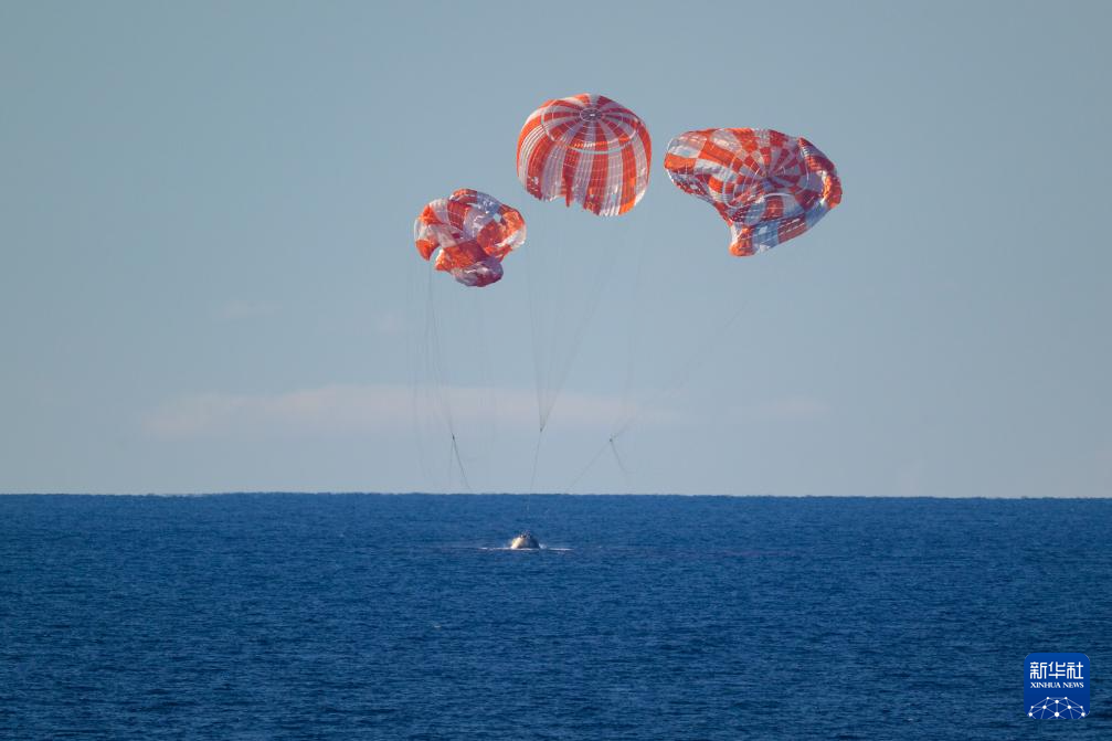 新华社洛杉矶4月10日电(记者高山)执行美国“阿耳忒弥斯2号”载人绕月飞行任务的“猎户座”飞船返回地球,于美东时间10日20时07分(北京时间4月11日8时07分)溅落在加利福尼亚州圣迭戈附近海域。