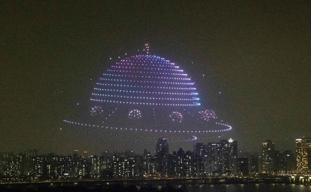 这是4月10日在韩国首尔拍摄的夜景灯光秀。新华社发(全休相摄)