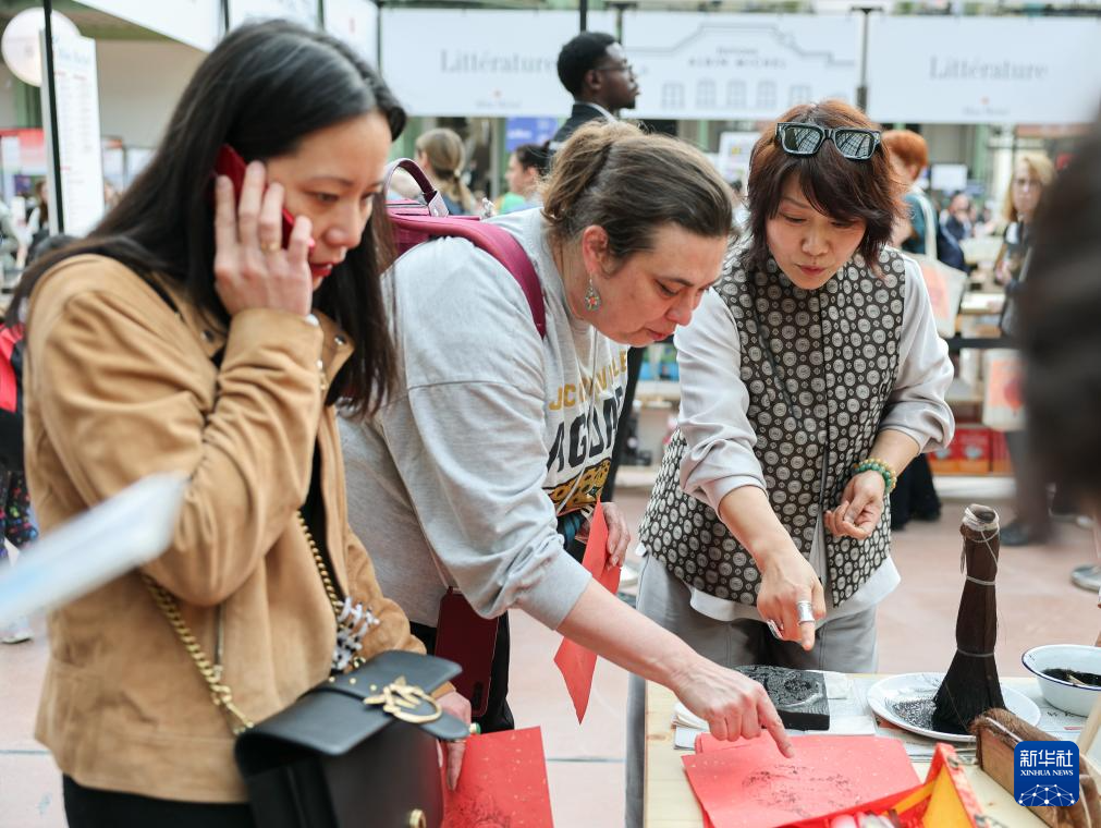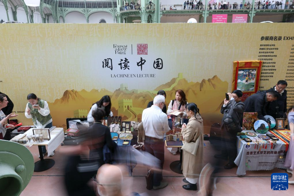 4月17日,在法国巴黎,人们在巴黎图书节中国展台参观。新华社记者 邬惠我 摄