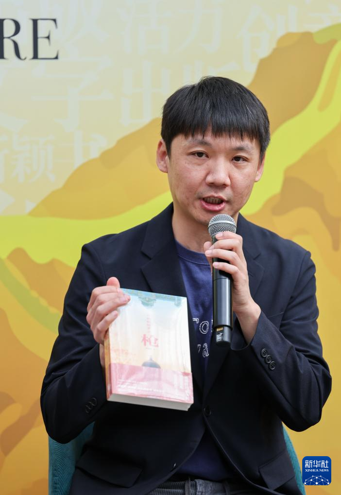 4月17日,在法国巴黎,作家刘同在“巴黎图书节中国青年作家推广活动”上发言。新华社记者 邬惠我 摄