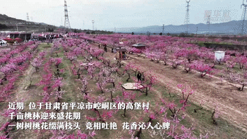近期,位于甘肃省平凉市崆峒区的高堡村千亩桃林迎来盛花期,一树树桃花缀满枝头、竞相吐艳、花香沁人心脾。崆峒区同步举办为期10天的高堡桃花节,吸引了众多游客踏青赏花。
