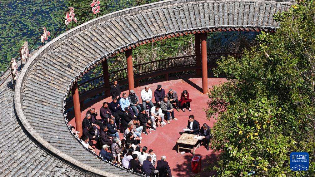 4月19日拍摄的泗洪县上塘镇垫湖村村民代表票决民生实事现场(无人机照片)。