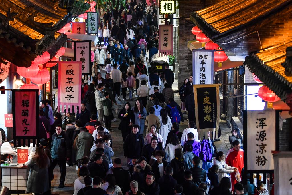游客在忻州古城内参观游玩。新华社记者 曹阳 摄