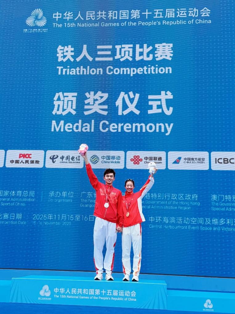 2025年十五运赛场,范俊杰在铁人三项男子个人比赛中,将上届的全运会铜牌“升级”为金色;在女子个人比赛中一直领先的林鑫瑜被对手在跑步赛段逆转,遗憾摘银。对于失利,林鑫瑜在社交媒体上乐观说道,“都不白来!”两人赛后的合影环节,范俊杰将自己的金牌和林鑫瑜的银牌交换,送给恋人一份独家荣誉。