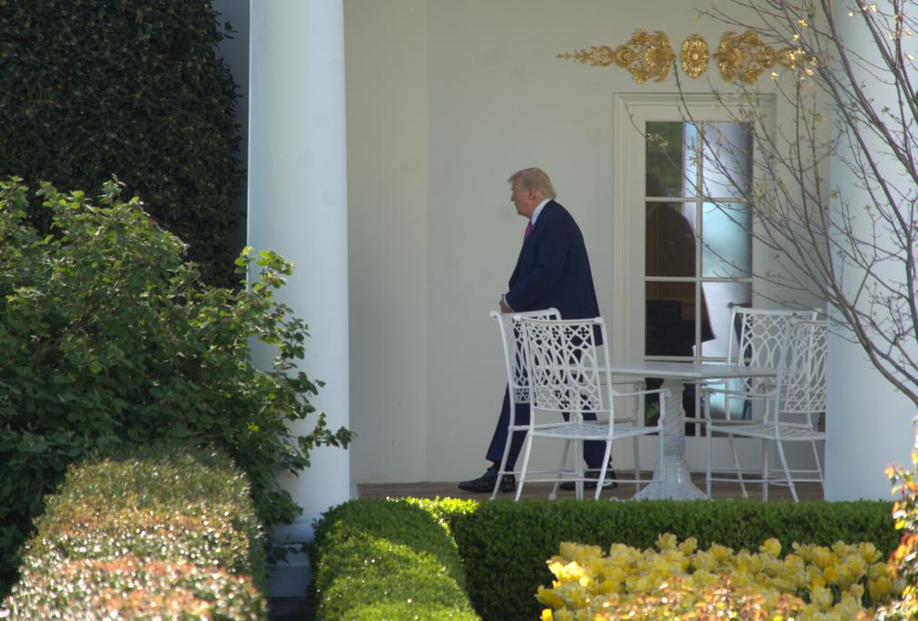 4月10日,美国总统特朗普准备乘直升机离开华盛顿白宫。新华社发(李源清摄)
