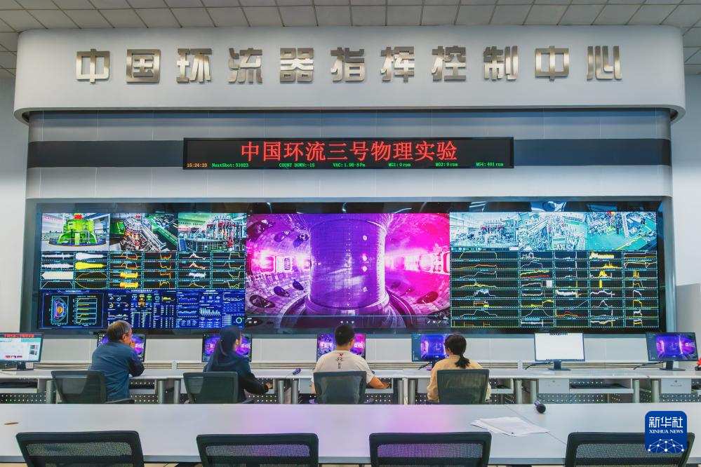 科研人员在指挥控制中心监测“中国环流三号”物理实验情况(2024年11月4日摄)。新华社发(何淑芳 摄)