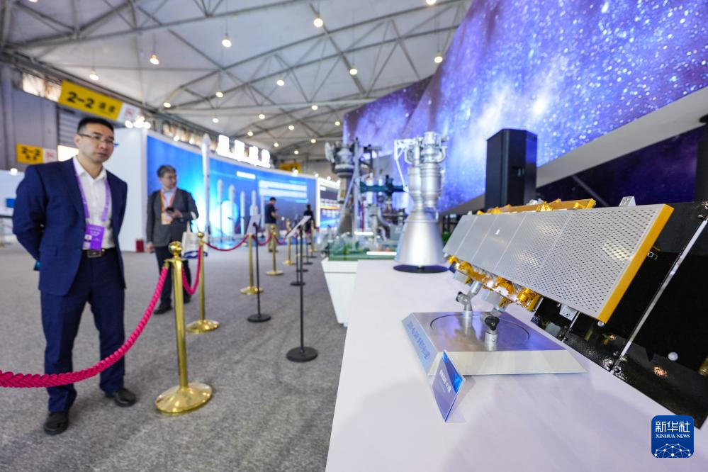 2026年4月24日,参会嘉宾在航天科普展览四川航天展区上参观。新华社记者 王曦 摄