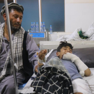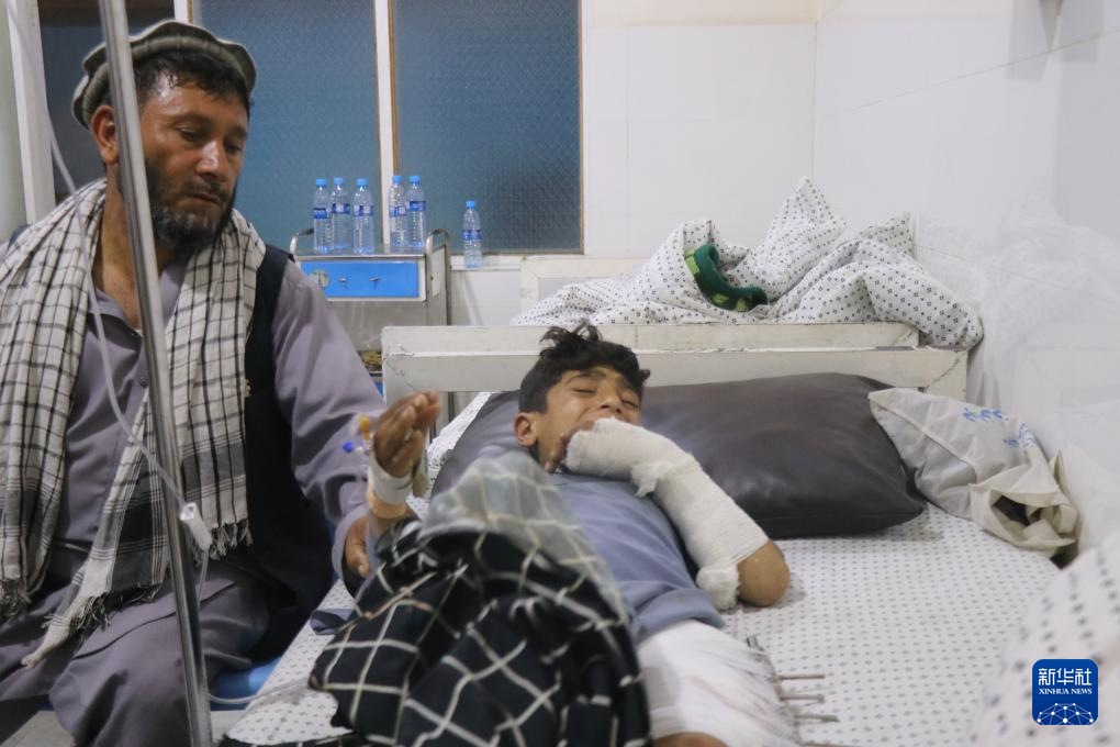 4月27日,在阿富汗东部库纳尔省阿萨达巴德一家医院里,边境冲突中的伤者接受治疗。新华社发(卡扎菲·马勒摄)