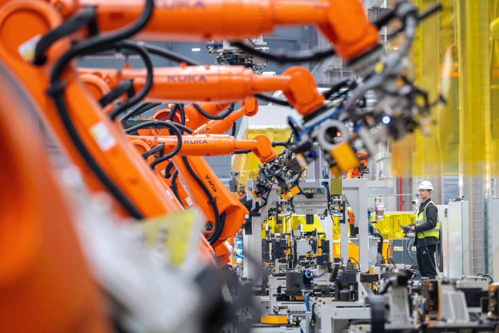 2026年3月16日,在浙江省湖州市长兴县吕山乡,诺力五期未来工厂的工人在智能化生产线上工作。新华社发(谭云俸 摄)