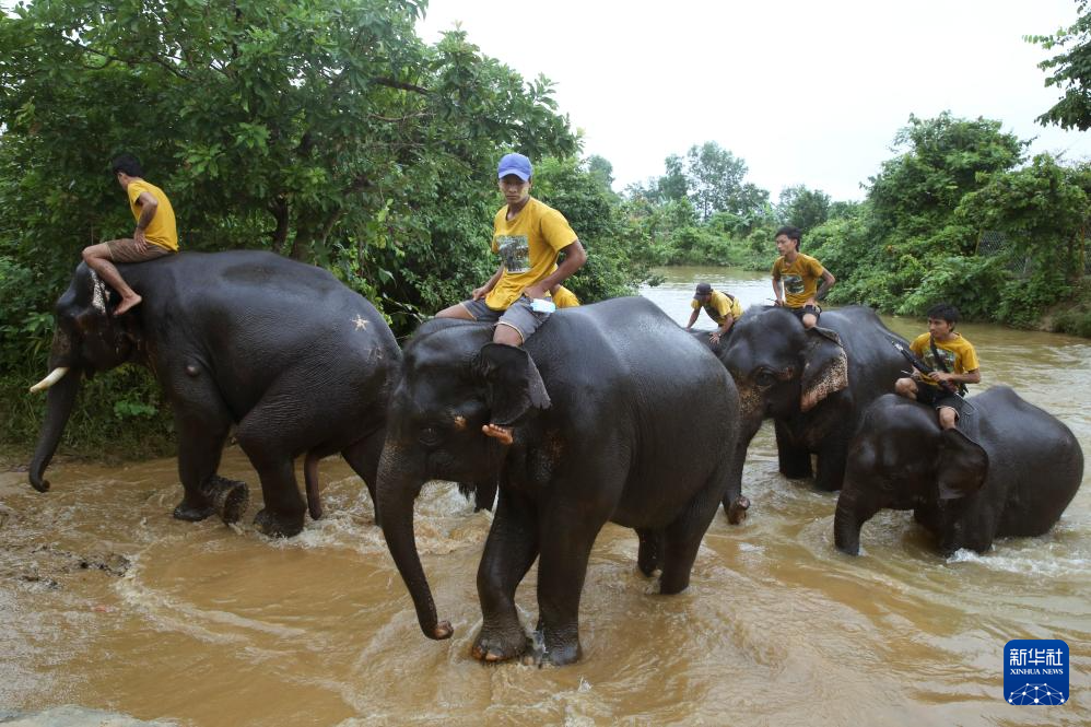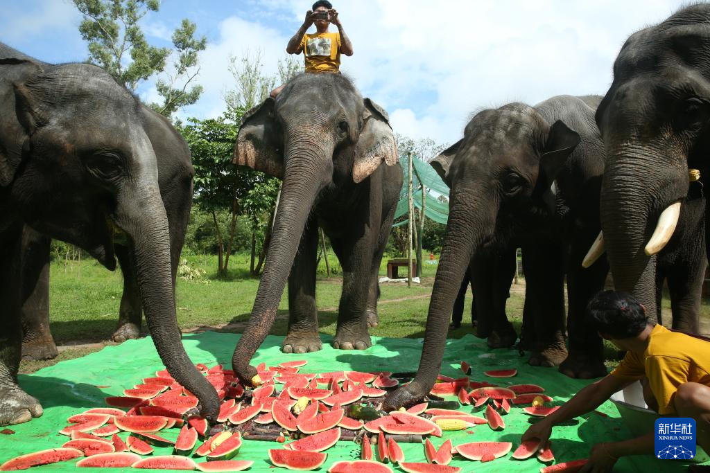 当日是世界大象日。位于缅甸勃固省的温加波大象营地建于2016年,致力于救助和收养大象“孤儿”。