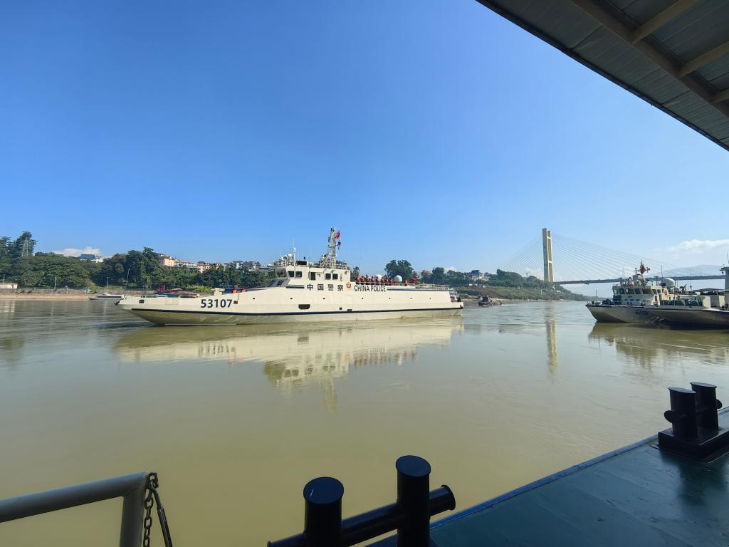 12月5日,中方53107艇正在缓缓靠泊景哈警务码头。(云南省公安厅水上巡逻总队供图)