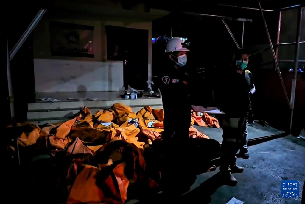 12月28日,警方人员在印度尼西亚北苏拉威西省万鸦老市发生火灾的养老院工作(手机拍摄)。