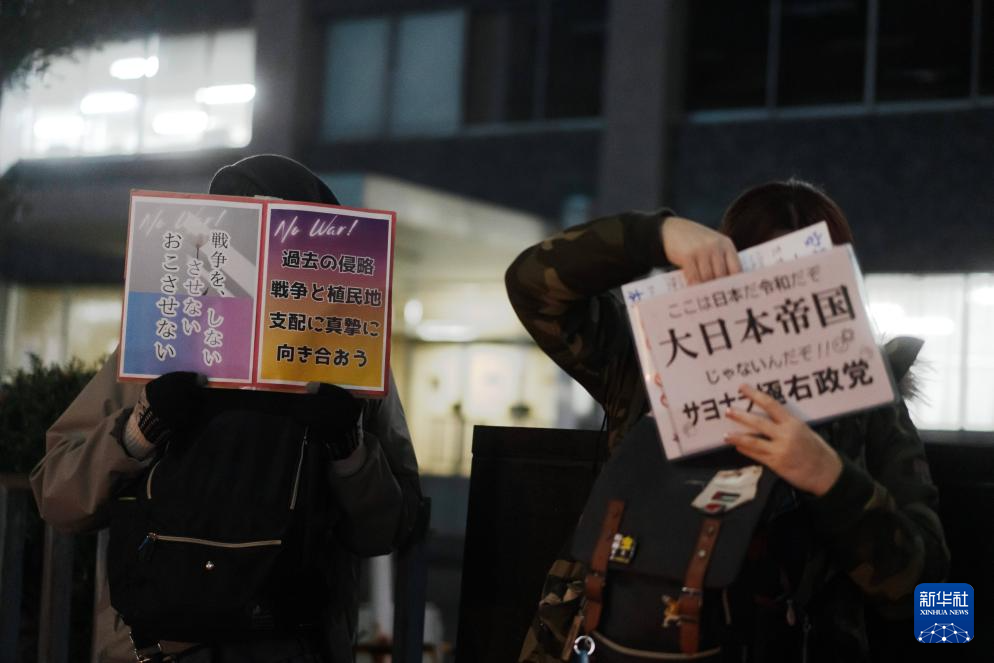 9日晚,大批日本民众聚集在日本首相官邸前,抗议日本首相高市早苗对美国军事打击委内瑞拉回避表态及政府近期一系列危险军事动向。