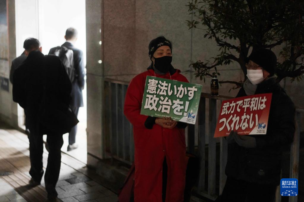 1月9日,民众在日本东京的首相官邸外参加抗议活动。