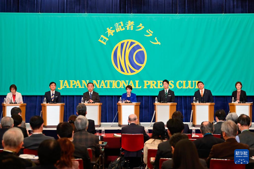 1月26日,在日本东京,日本首相、执政党自民党总裁高市早苗(右四)出席党首辩论会。