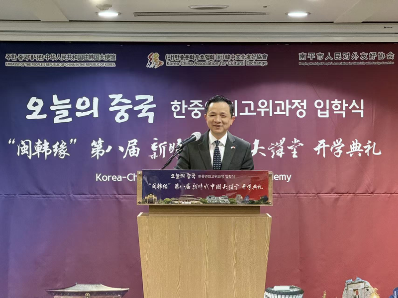 3月18日,中国驻韩国大使戴兵在第八届“新时代中国大讲堂”开学典礼上致辞。记者 黄昕欣 摄