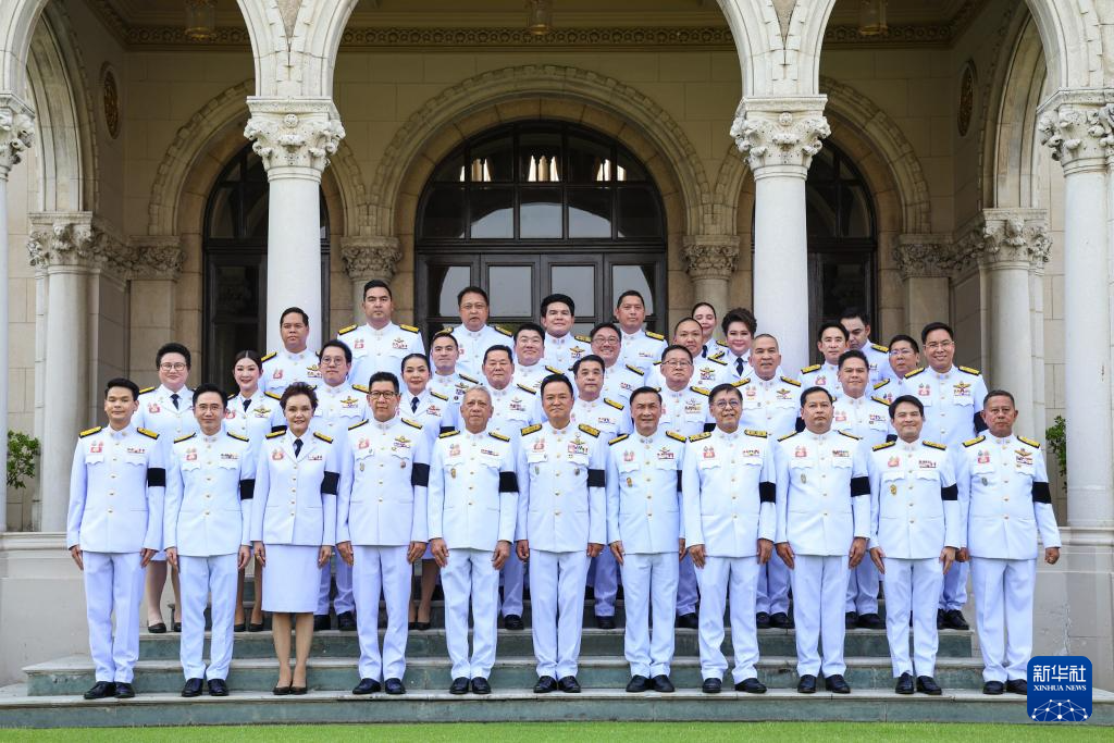 4月6日,泰国新一届内阁在位于曼谷的总理府合影。新华社发(拉亨摄)