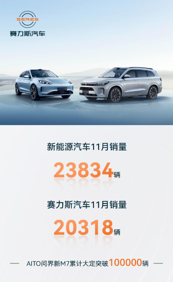 赛力斯汽车11月销量20318辆 AITO问界新M7连续两月交付破万