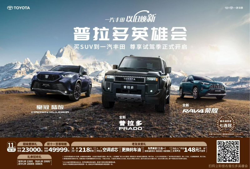 岁末将至,普拉多再次开启传奇征程,带来精彩年度收官之旅,活动覆盖全国百城,万人共赴英雄盛会。继在哈尔滨之后, “普拉多英雄会”还将在西、东、中、南4大区的乌鲁木齐、宁波、郑州、深圳等4个城市陆续开展。