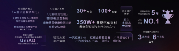 商汤绝影的技术和产品持续创新,商业化落地也全面开花,量产交付稳步推进。智驾方案已量产交付广汽埃安、一汽红旗等3家车企6款车型。第三方调研数据显示,商汤绝影在座舱视觉AI软件市场的份额连续五年蝉联第一。此外座舱AI大模型产品已上车小米SU7、智己、LEVC L380等车型。