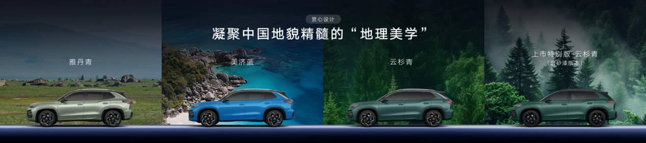 车身颜色上,全新探岳L开创性构建"地理美学"色系,以“6+1色彩哲学”,凝聚中国地貌精髓,其中雅丹青和美济蓝均是大众品牌中国区首次采用颜色。