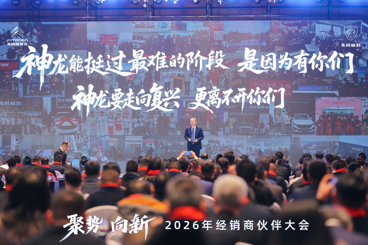 1月9日,神龙汽车2026年经销商伙伴大会在武汉召开。本次大会以“聚势向新”为主题,旨在深化“在中国 为全球”战略,携手开启高质量发展的新篇章。东风汽车集团有限公司党委常委、副总经理、神龙汽车董事长黄勇,Stellantis集团执行副总裁、中国及亚太区负责人奥立维(Grégoire Olivier),神龙汽车副董事长、总经理吕海涛,党委书记、副总经理程军等相关方领导,与全国经销商伙伴齐聚一堂,共商合作大计,合力推动神龙汽车复兴事业开启新局。