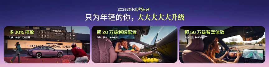 小鹏以技术创新打破惯例。2026款小鹏MONAM03将带来媲美行业50万级旗舰智能体验。