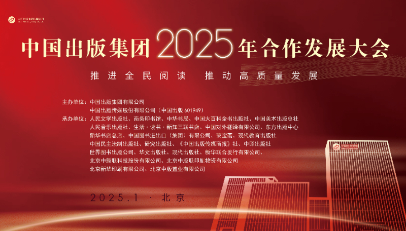 中国出版集团2025年合作发展大会1月7日在北京举行。中国出版协会理事长邬书林,中国版权协会理事长阎晓宏,中国期刊协会理事长吴尚之,中宣部印刷发行局局长李一昕,韬奋基金会理事长刘伯根,中国出版集团有限公司董事长、党组书记黄志坚,中国出版集团有限公司总经理、党组副书记常勃,中国出版集团有限公司副总经理、党组成员陈永刚,中国出版集团有限公司副总经理、党组成员张宏,中国出版集团有限公司党组成员、中国出版传媒股份有限公司副总经理张纪臣,中国出版集团有限公司党组成员、中国出版传媒股份有限公司副总经理臧永清,中国建筑集团党组副书记、董事单广袖,北京市委宣传部副部长、市新闻出版局(版权局)局长翟德罡,重庆市委宣传部副部长、市新闻出版局(版权局)局长马然希,各省市自治区出版、发行单位的主要负责人等出席大会。中国出版集团有限公司党组成员、中国出版传媒股份有限公司总经理茅院生主持会议。
