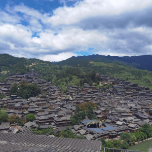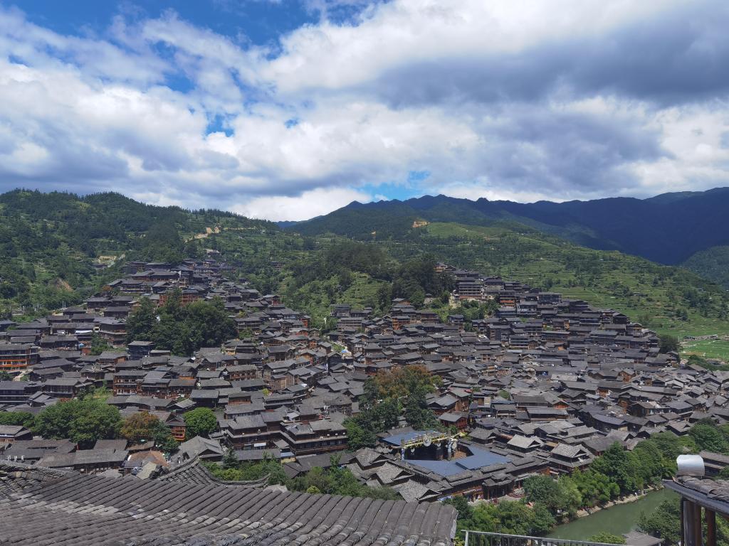 西江千户苗寨位于雷山县东北部雷公山麓的一个河谷缓坡地带,四周群山环绕,白水河穿寨而过。全寨由多个村寨连片组成,共有1000多户,6000余人,是世界最大的苗族聚居村寨。