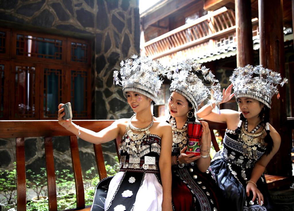 时下,寨子里最火热的游玩项目莫过于“美拍”,也催生了当地时尚的“美丽经济”。“穿上精美的民族服装,带上特色的苗银头饰和银项圈,发出‘叮叮当当’的响声走在苗寨的街头拍照留念,是一次非常愉快的旅行体验。”来自杭州的游客李秀秀说。