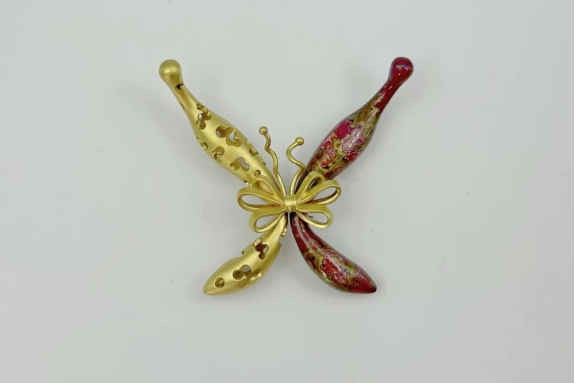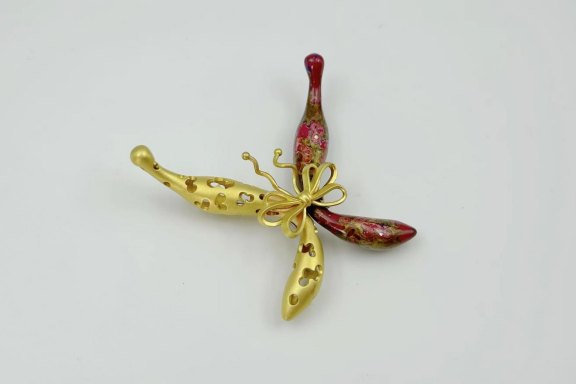 非遗大漆蝴蝶系列首饰的创意源自于对非物质文化遗产大漆工艺的敬意和对蝴蝶美好寓意的追求。大漆工艺拥有千年历史,以其独特的质感和光泽闻名。蝴蝶象征着自由、生命与美好,是传统文化中吉祥的象征。大漆的温润与蝴蝶的轻盈相得益彰,象征着生命与美好的永恒,这不仅是一件精美的饰品,更是文化的传承与表达。