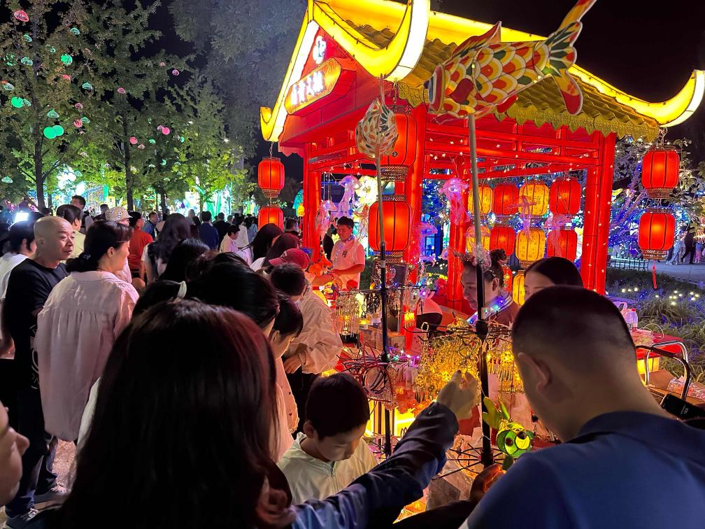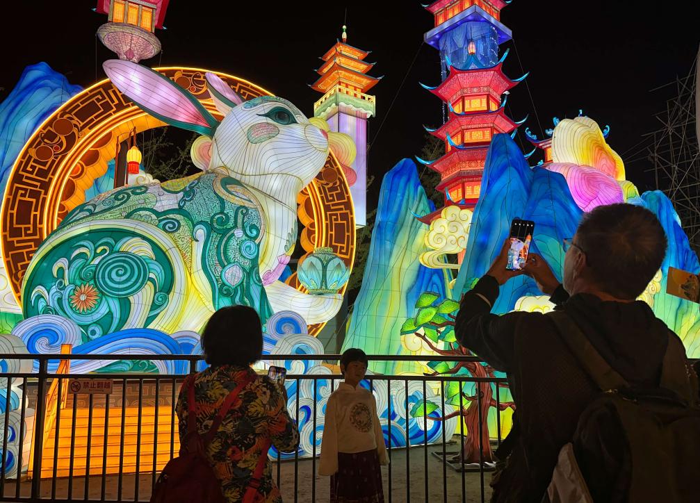 在位于丰台区的北京园博园,正在举办的“京彩灯会”——2024年北京中秋国庆彩灯游园会让市民游客沉浸在“花市灯如昼”的世界。《花团锦簇》灯组再现长城脚下壮丽景色,《北京风物》灯组精细描绘老北京美食与茶文化……灯会创新融合自贡灯会与北京文化,设置九大主题展区,展出200余组彩灯、10万件彩灯挂件,在展出周期、灯会规模、灯组规格设计等方面,均开创了北京灯会历史之最。
