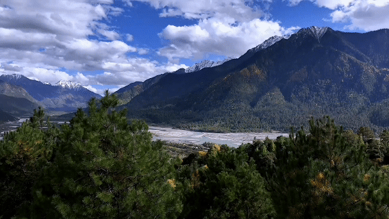 川藏线穿过高山密林伴着帕隆藏布江蜿蜒