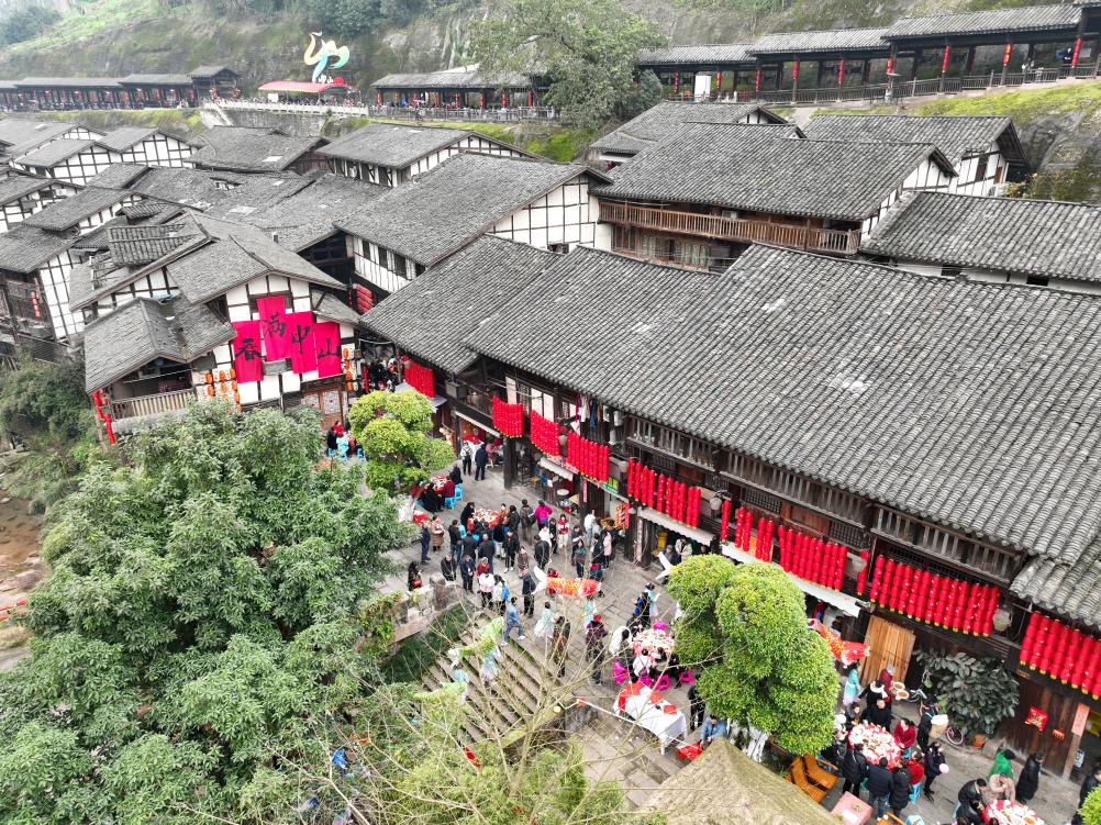 “千米长宴”是中山镇流传近千年的传统民俗,每逢春节等重大传统节日,古镇居民就沿街设宴,邀请八方来客与本地居民一起品年味、享团圆。