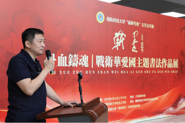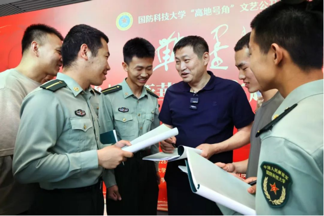 4月26日上午,著名影视、话剧演员,电视剧《亮剑》一营长“张大彪”饰演者战卫华走进国防科技大学,以举办书展、座谈研讨、现场笔会等形式,与学校师生面对面交流。