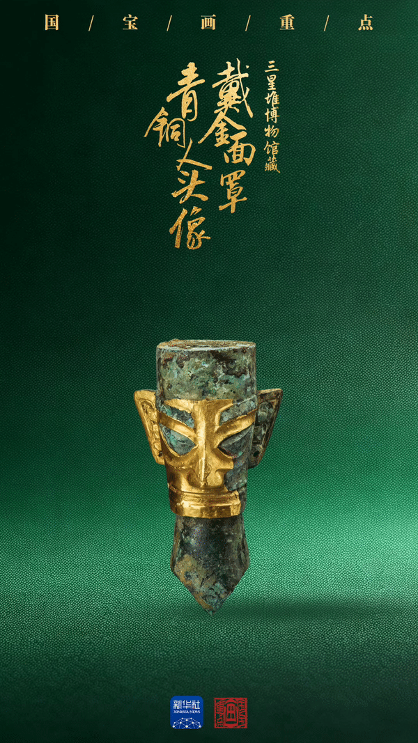 金冠带、金面具、戴金面罩青铜人头像