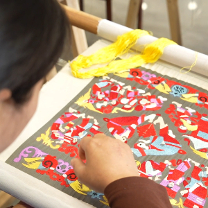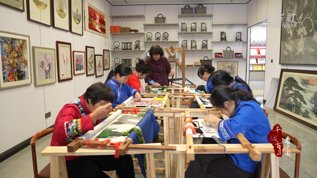 走进湖南省张家界市永定区王家坪镇马头溪村土家族刺绣非遗工坊,绣娘们围坐案前,飞针走线、凝神创作,省级非物质文化遗产代表性项目土家族刺绣代表性传承人张绣云在一旁全程指导,从制稿、临稿、配色到绣织,每一道工序都精益求精。