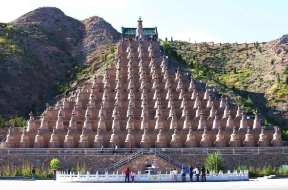 青铜峡一百零八塔,是一座由108座古塔组成的千年古塔群,因塔数而得名,是中国现存规模最大且排列最整齐的大型古塔群之一,距今有近千年的历史。塔群坐落于黄河岸边,坐西面东,依山傍水,塔基下曾出土西夏文题记的帛书等文物,是国家级重点文物保护单位。一百零八塔整体呈等腰三角形,按一、三、三、五、五、七、九……奇数排列,全国仅青铜峡一处,它以其独特的建筑格局、神秘的西夏历史和深远的传统文化闻名遐迩,屹立于世界众塔之中。