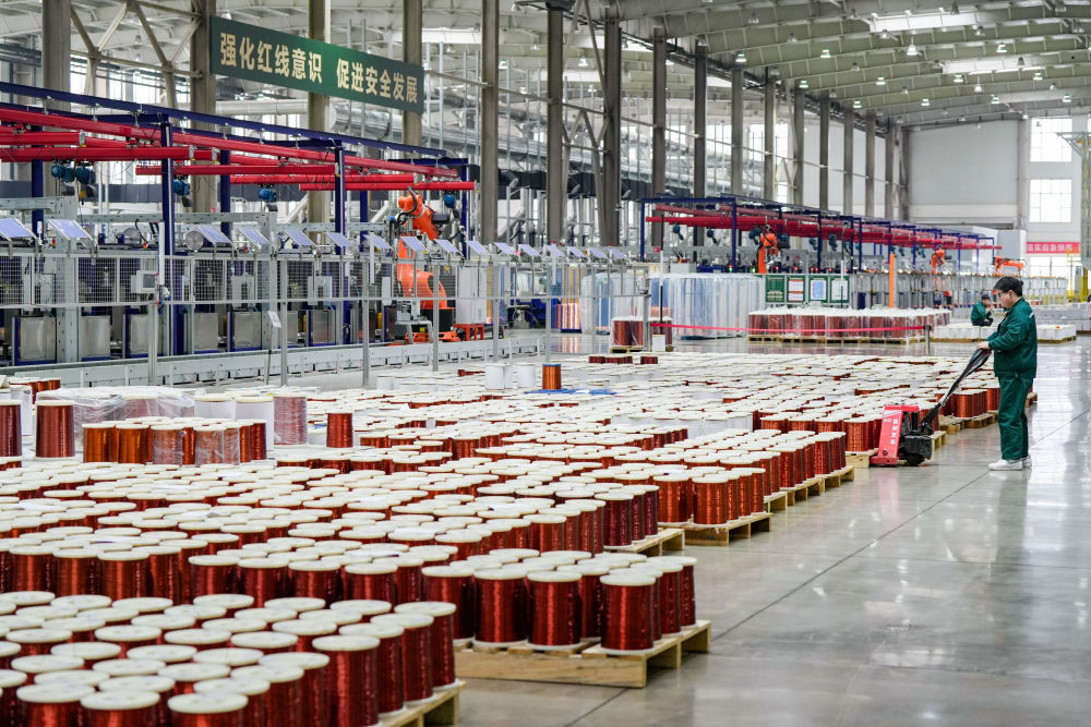 2025年2月6日,工人在重庆万州经开区金龙铜管生产车间作业。(黄建桦 摄)