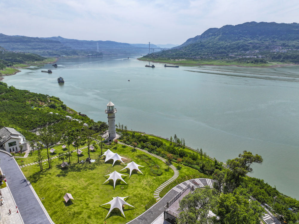 这是2024年5月15日拍摄的重庆万州小桔灯生态文化旅游区及长江景象(无人机照片)。新华社记者王全超摄