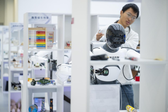 2025年11月6日,在湖北人形机器人创新中心,人形机器人数据采集员在进行数据采集工作。新华社记者 伍志尊 摄