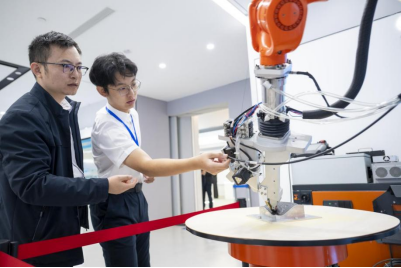 2025年11月6日,在武汉产业创新发展研究院,工作人员展示增材制造机器人。新华社记者 伍志尊 摄