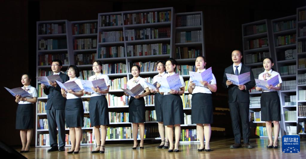 4月23日,来自各地图书馆馆员共同朗读“书籍,春风,还有你——给读者的一封邀请信”。新华社记者 潘旭 摄